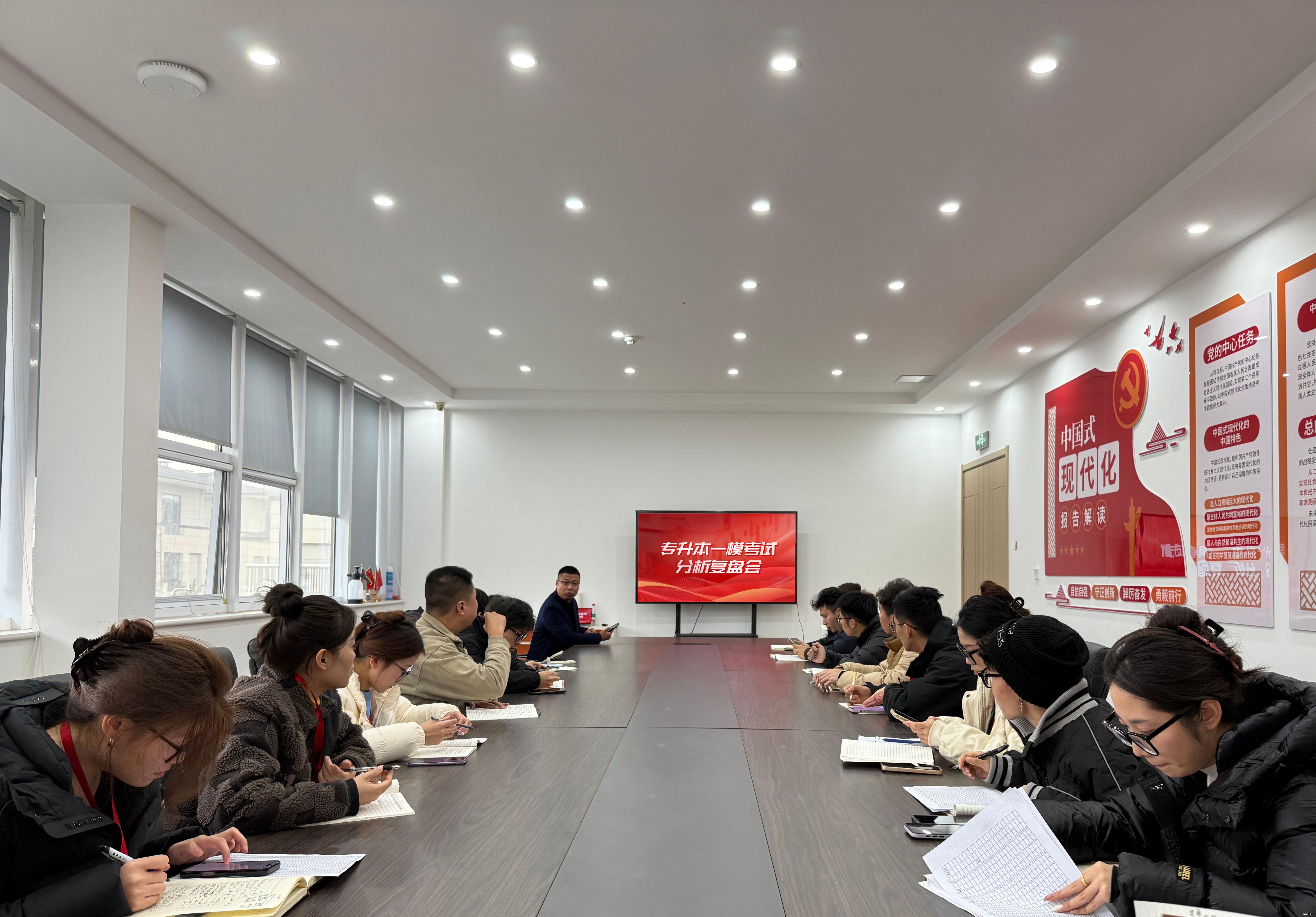 近日,随着一模考试落下帷幕,学校成功召开专升本一模考试分析复盘会。杨立峰校长、教务部、学管部、大学语文及高等数学等各课程答疑老师共同出席了本次会议。会议围绕一模成绩深度复盘、学生问题精准诊断、下阶段备考策略优化等展开深入交流。正确看待、科学分析,发现学习中的薄弱环节和存在的问题,寻找方法,有效应对。