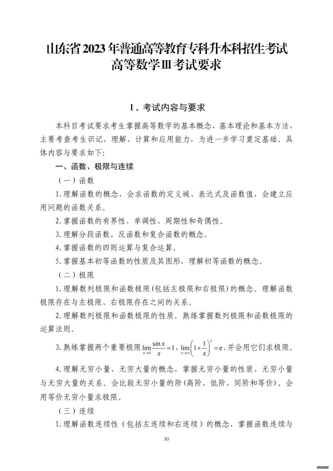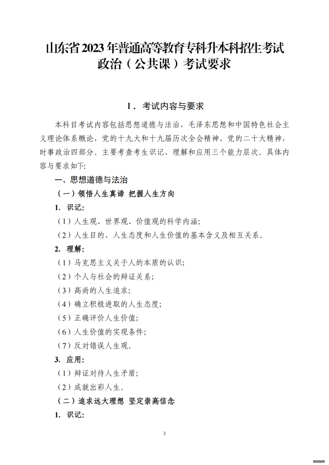 考试大纲】2023年山东专升本考试公共基础课考试要求