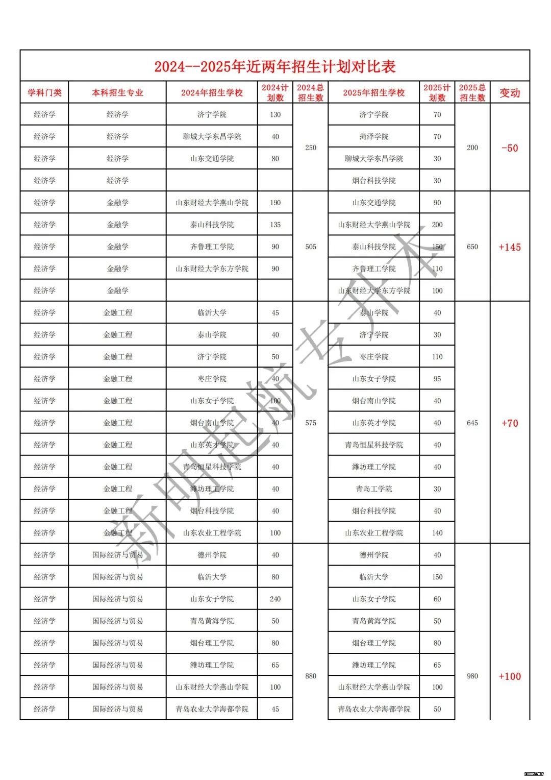 以下为2024-2025年山东专升本考试招生计划对比表: