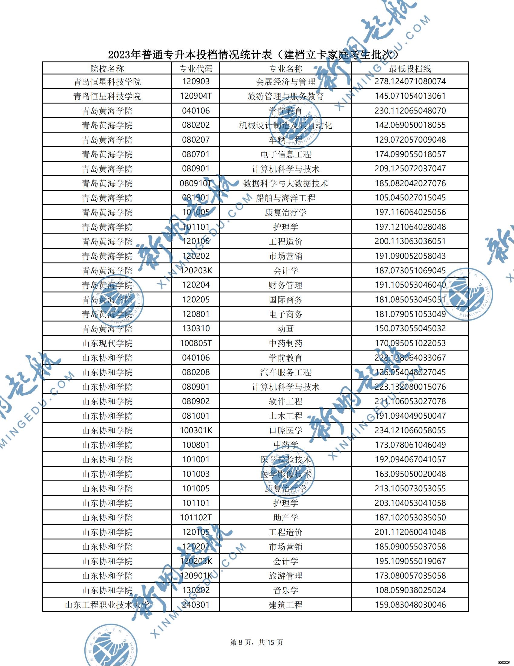 2023年普通专升本投档情况统计表(建档立卡家庭考生批次)
