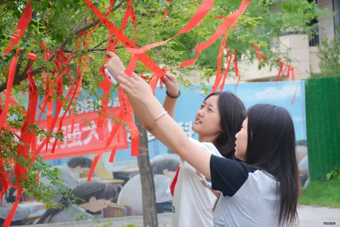 当同学们小心翼翼地将丝带系在树枝上时,微风拂过,丝带随风轻舞,像是在向天空诉说着他们年轻而最热烈的心声。