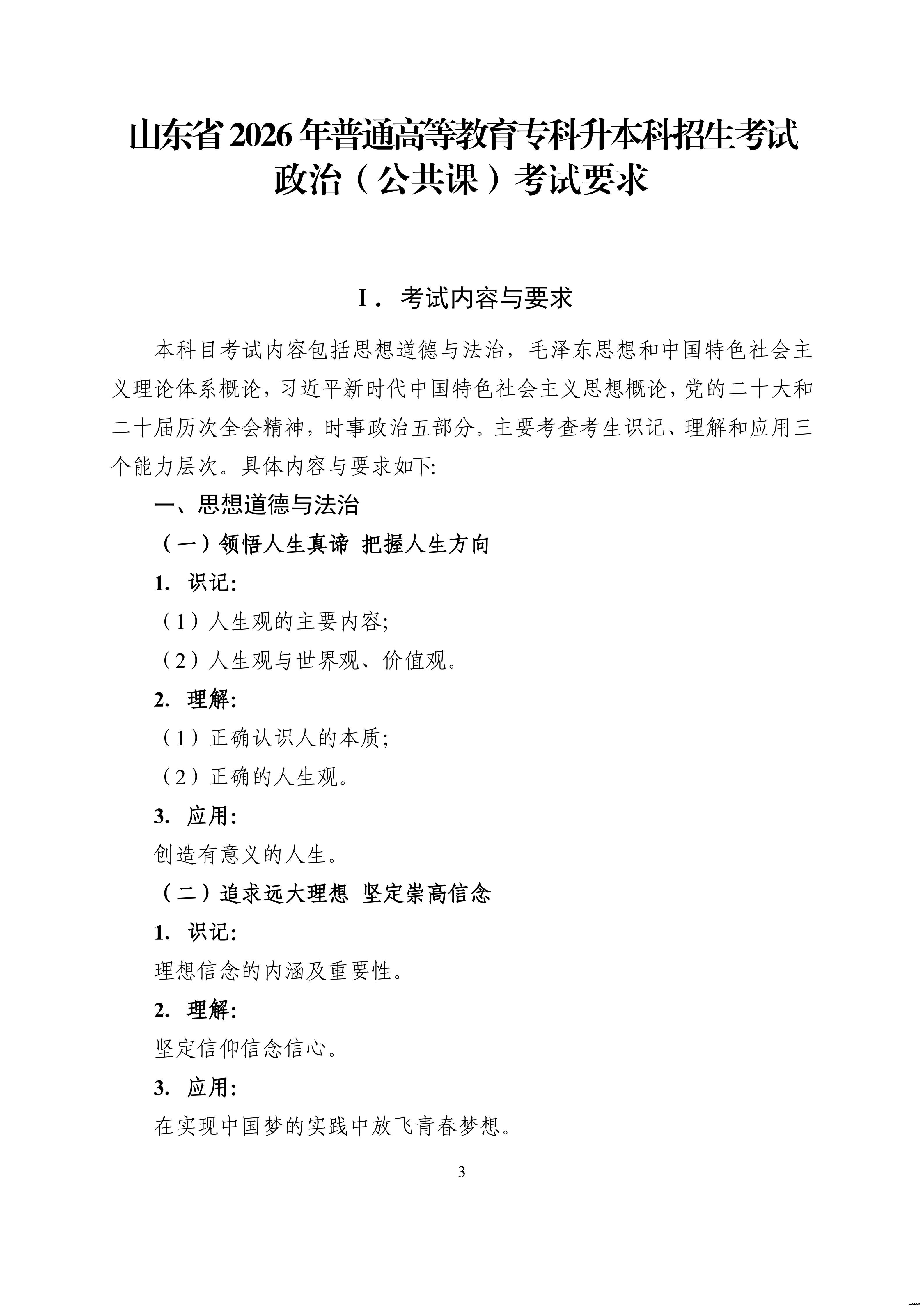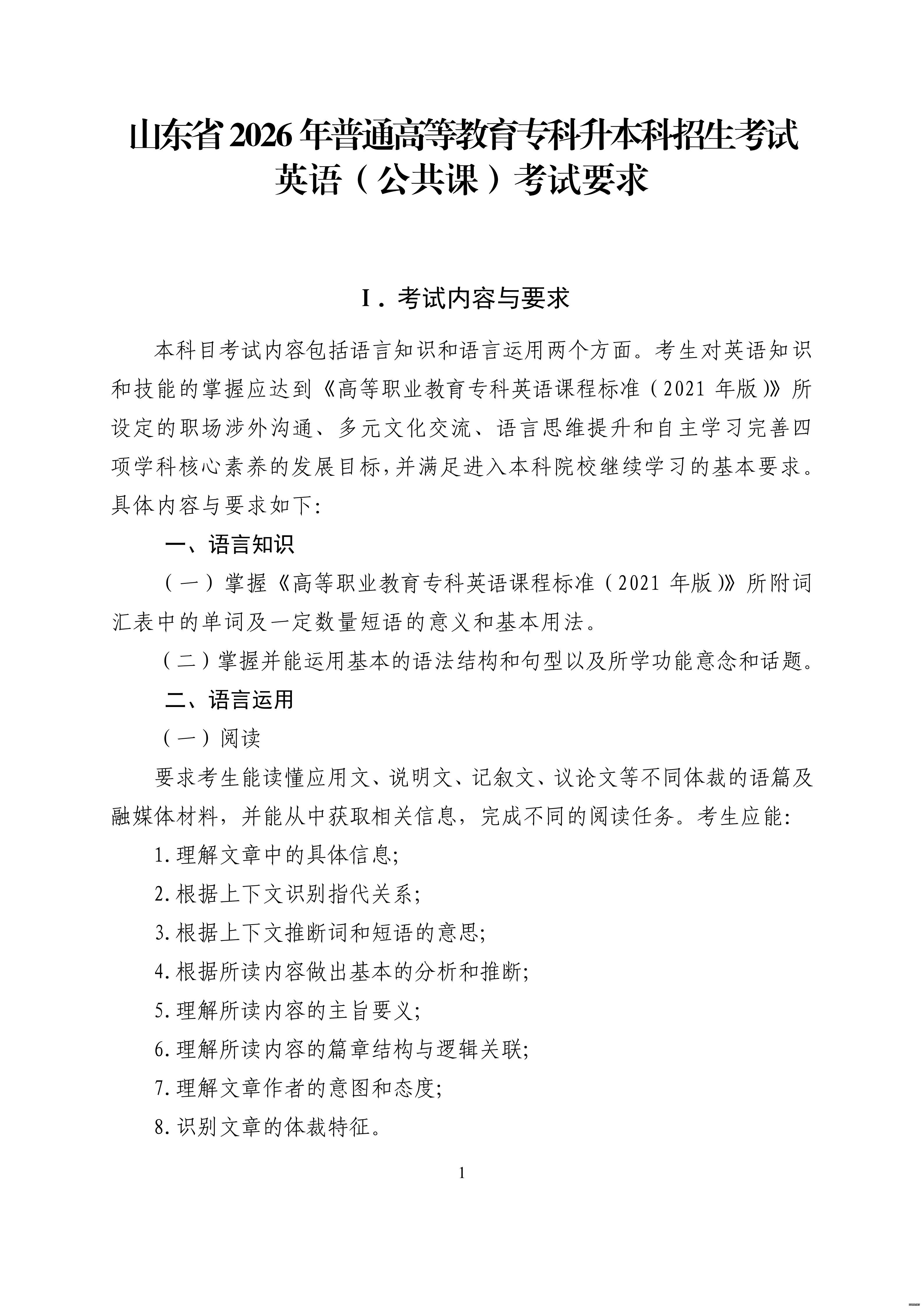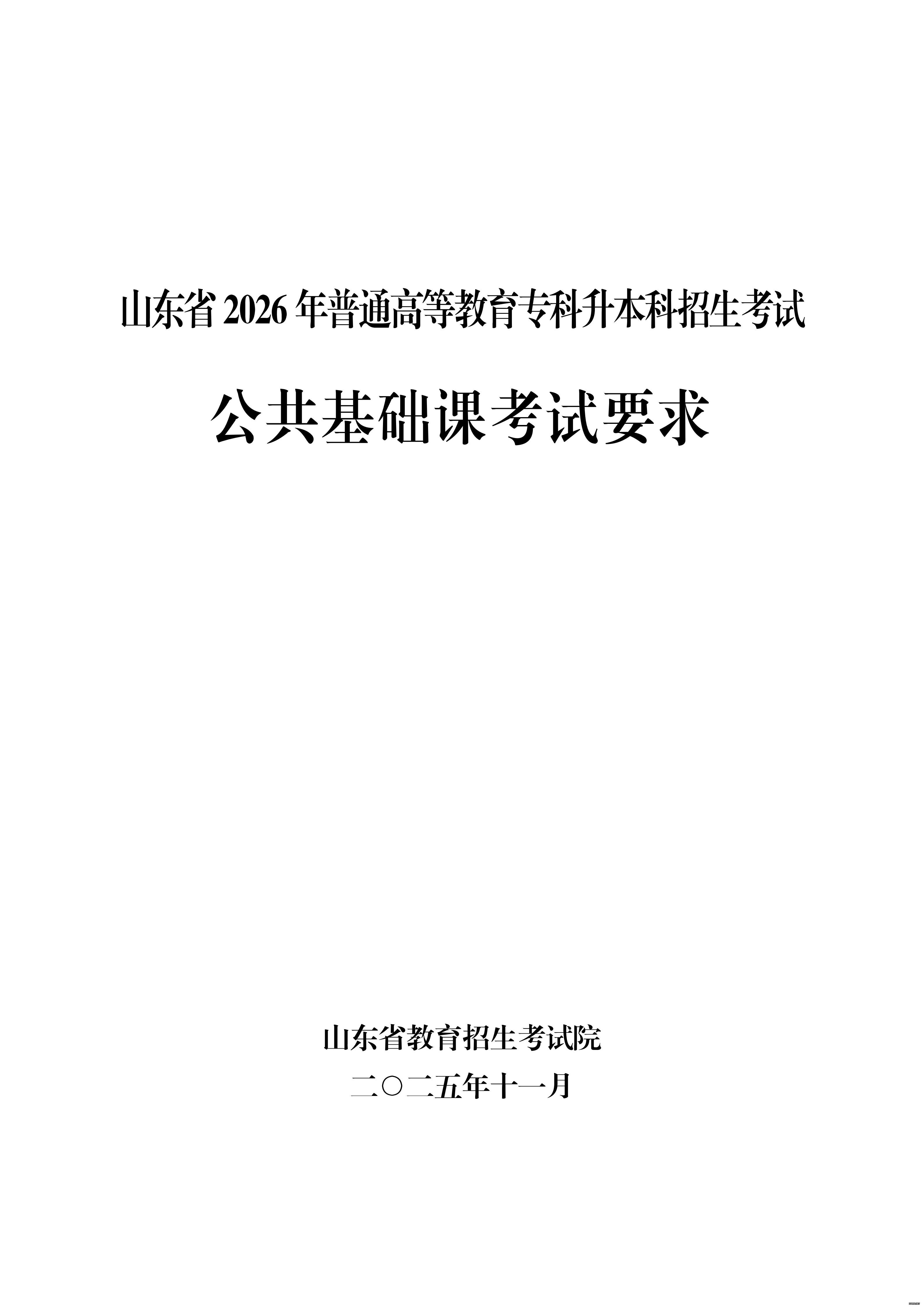 山东省教育招生考试院官网发布考试大纲: