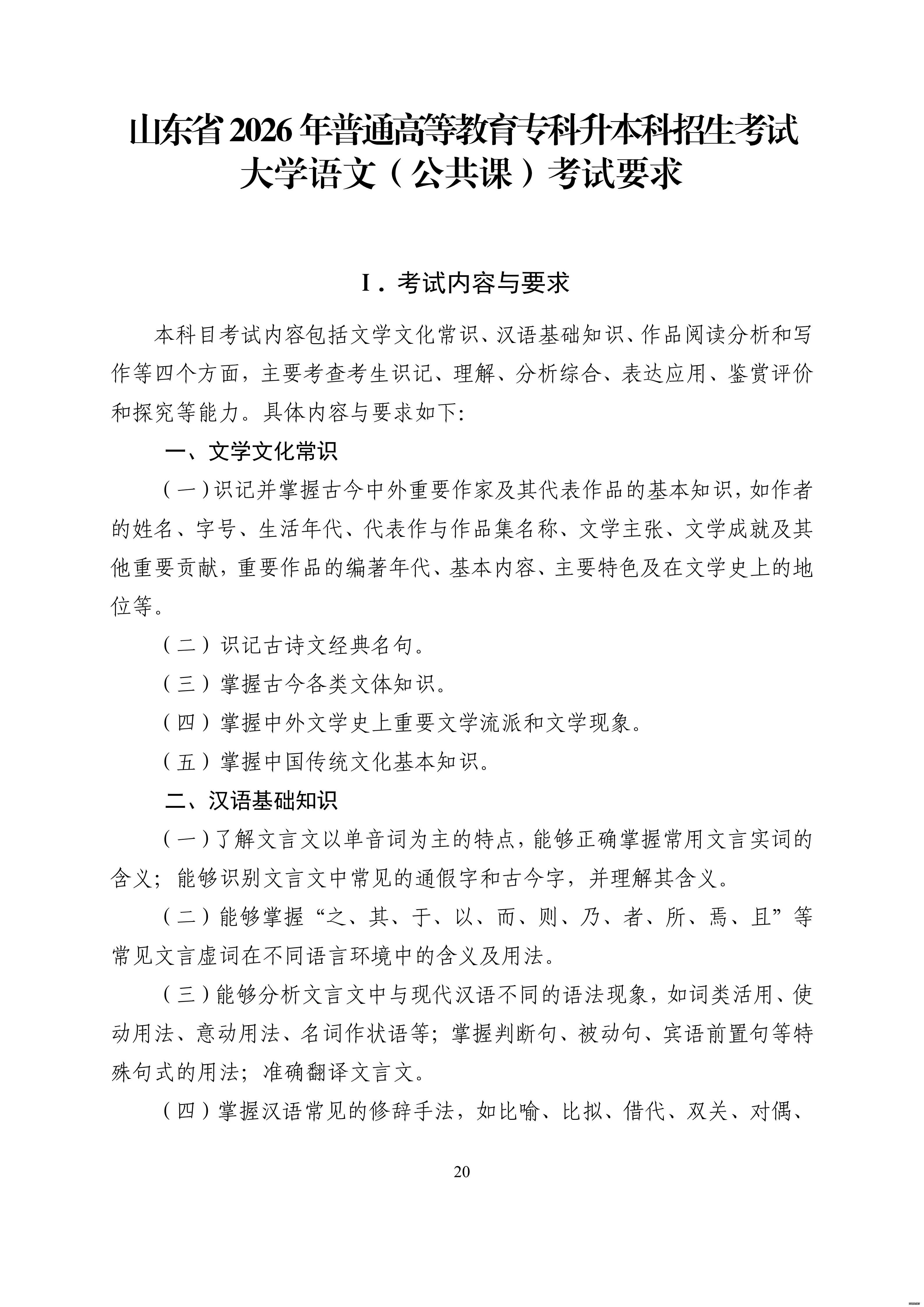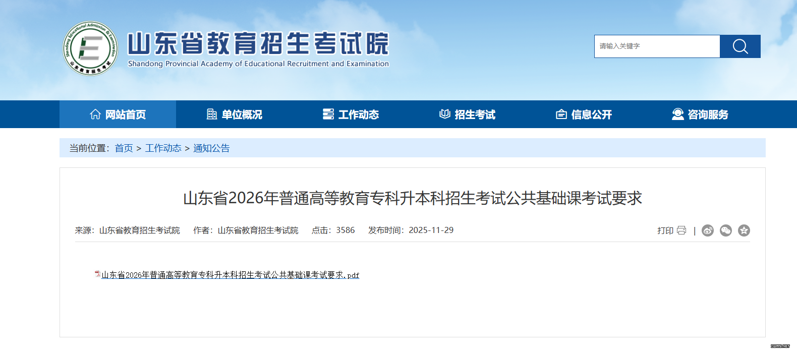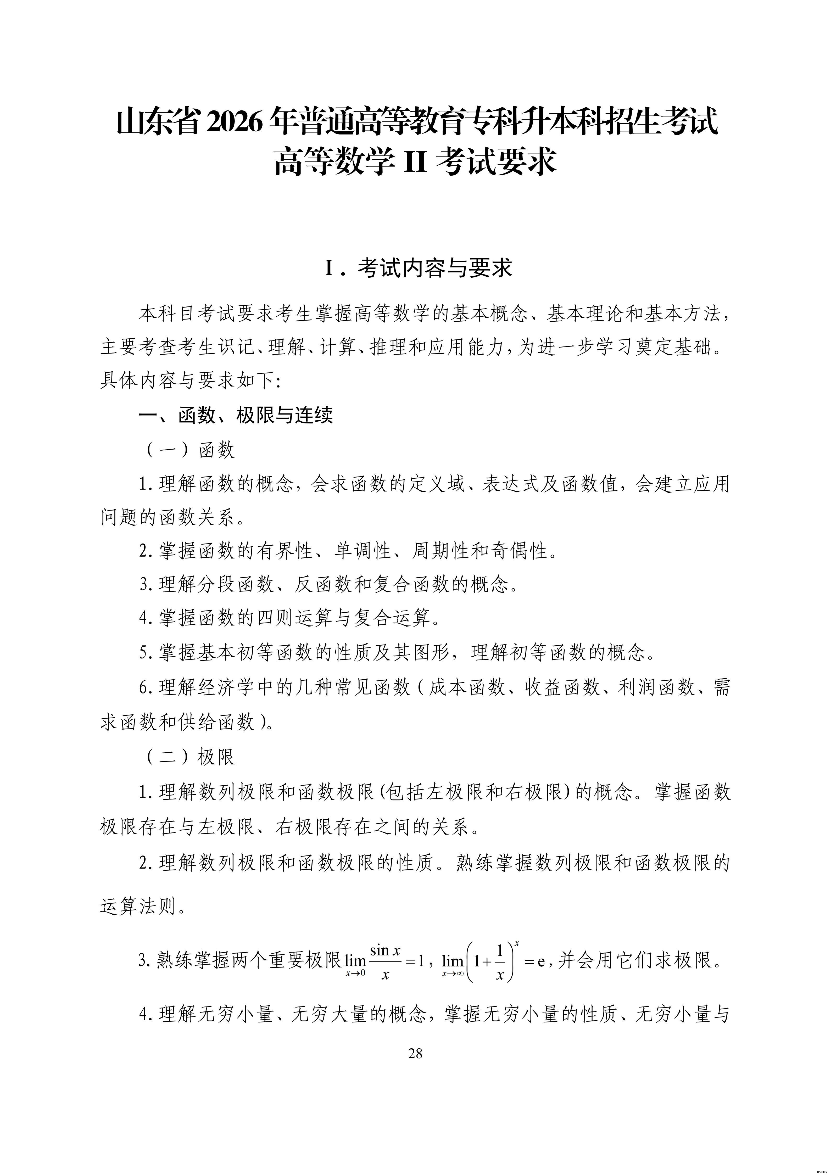 山东省教育招生考试院官网发布考试大纲: