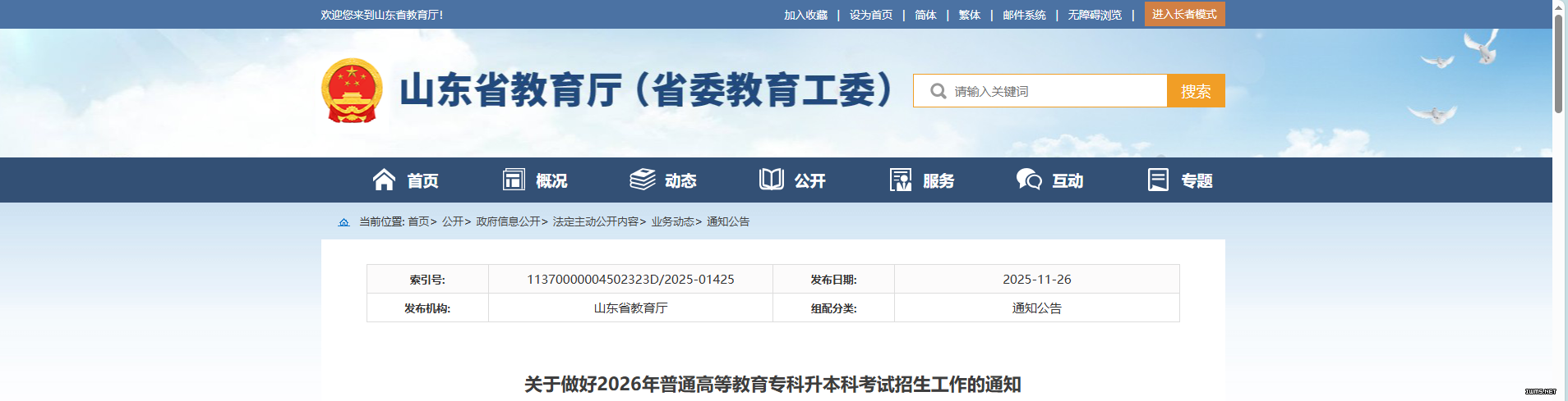 为做好我省2026年普通高等教育专科升本科(以下简称专升本)考试招生工作,提升人才选拔和培养质量,根据教育部工作要求,结合我省实际,现就有关事项通知如下: